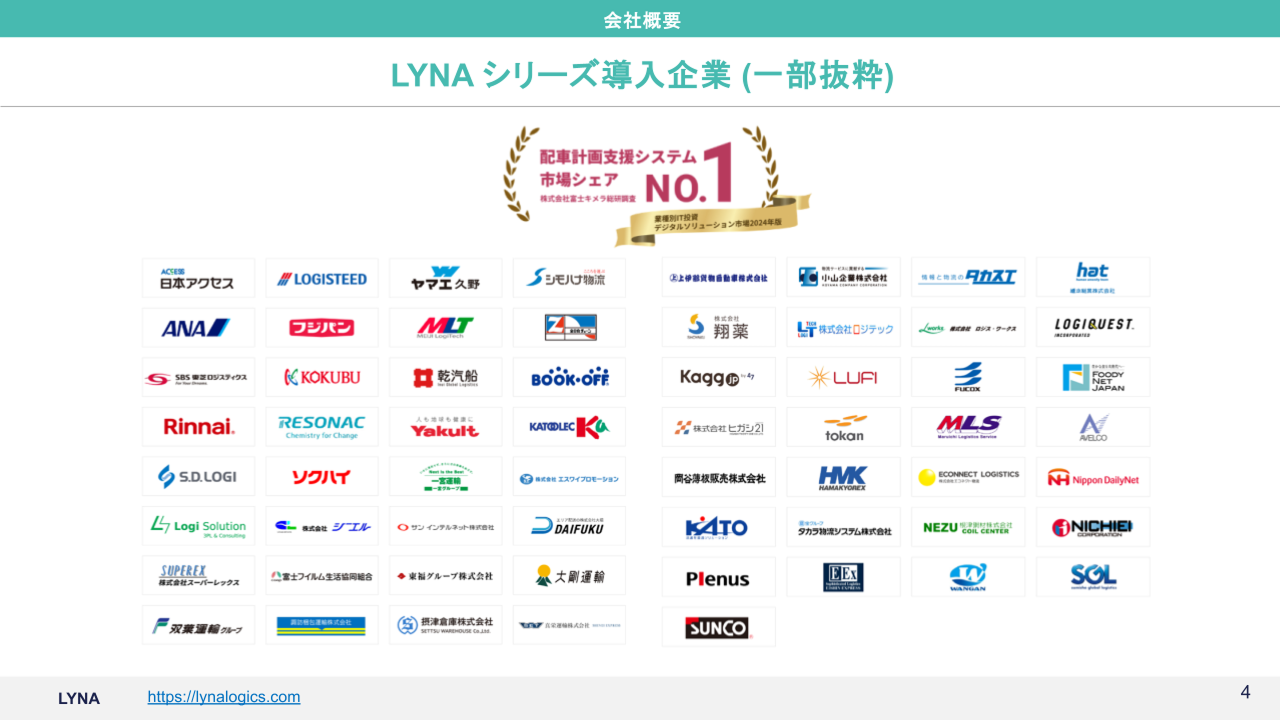 LYNA DXプラットフォームは物流業務における配車・集配指示・日報作成・請求などの業業務をを一気通貫でデジタル化できるクラウドサービスです。ExcelやCSVに対応。データの二重管理や煩雑な入力作業をなくし、配車担当者・運行管理者の業務負担を軽減。デジタル化により、書類への手書き作業や電話・FAXでの指示をなくせる他、協力会社とのやりとりをクラウド上でエビデンスを残しながら行えるようになり、記入ミスや伝達ミス、事業者間の認識ズレを防ぎます。