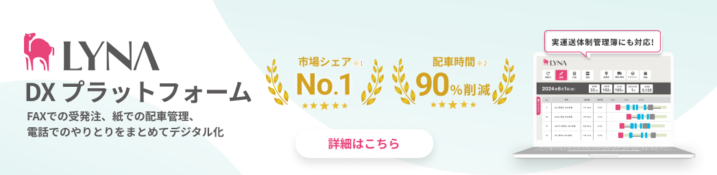 自動配車システム「LYNA 自動配車クラウド」は、誰でもかんたんに優れた配車計画を作成できるようにするクラウドサービスです。 完全クラウドタイプの自動配車システムなので、パソコンへのインストールは一切不要。インターネット環境さえあれば、いつでもどこでも自動配車システムを利用でき、作成した配車計画を他の拠点やドライバーと共有することも自由自在です。自動配車システムには独自開発したAIを搭載。あらゆる業種のロジスティクスに、今までにないスピードと効率をもたらします。